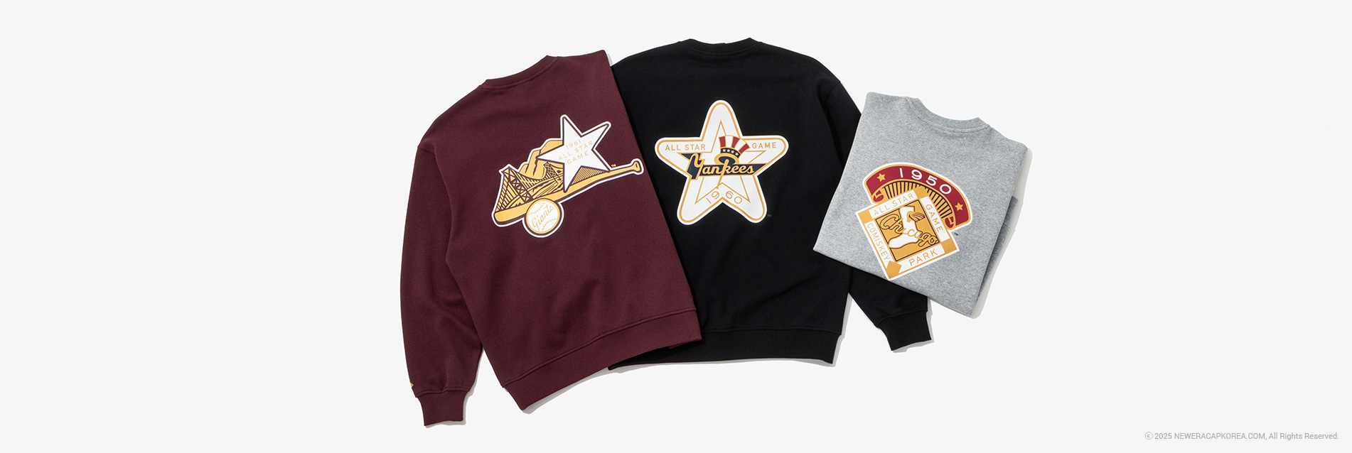MLB 올스타게임 맨투맨 컬렉션을 소개합니다. 베이직한 맨투맨 실루엣으로, MLB의 인기 구단인 뉴욕 양키스, 시카고 화이트삭스, 샌프란시스코 자이언츠의 3가지 스타일로 출시되었습니다. 전면 가슴 부분에는 각 구단의 로고를 프린트했으며, 후면에 구단별 개최했던 MLB 올스타게임의 로고를 프린트하여 포인트를 주었습니다. 그래픽 포인트로 데일리하게 활용하기 좋은 MLB 올스타게임 맨투맨 컬렉션을 지금 바로 만나보세요.