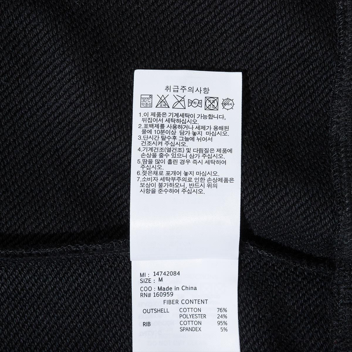 겉감 : 76% 코튼, 24% 폴리에스터