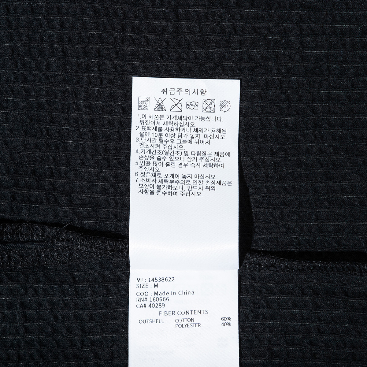 | 제품소재 | 겉감 : 60% 코튼, 40% 폴리에스터 |