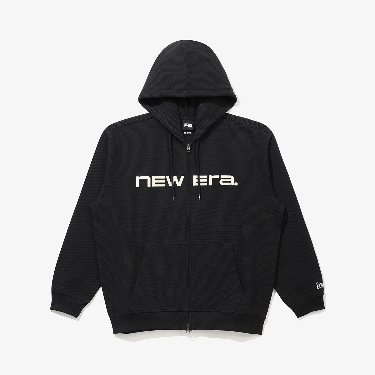 와플 후드 집업 재킷 블랙