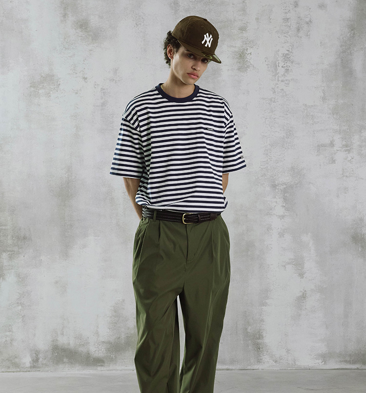 마이크로 스트라이프 티셔츠 화이트/블랙