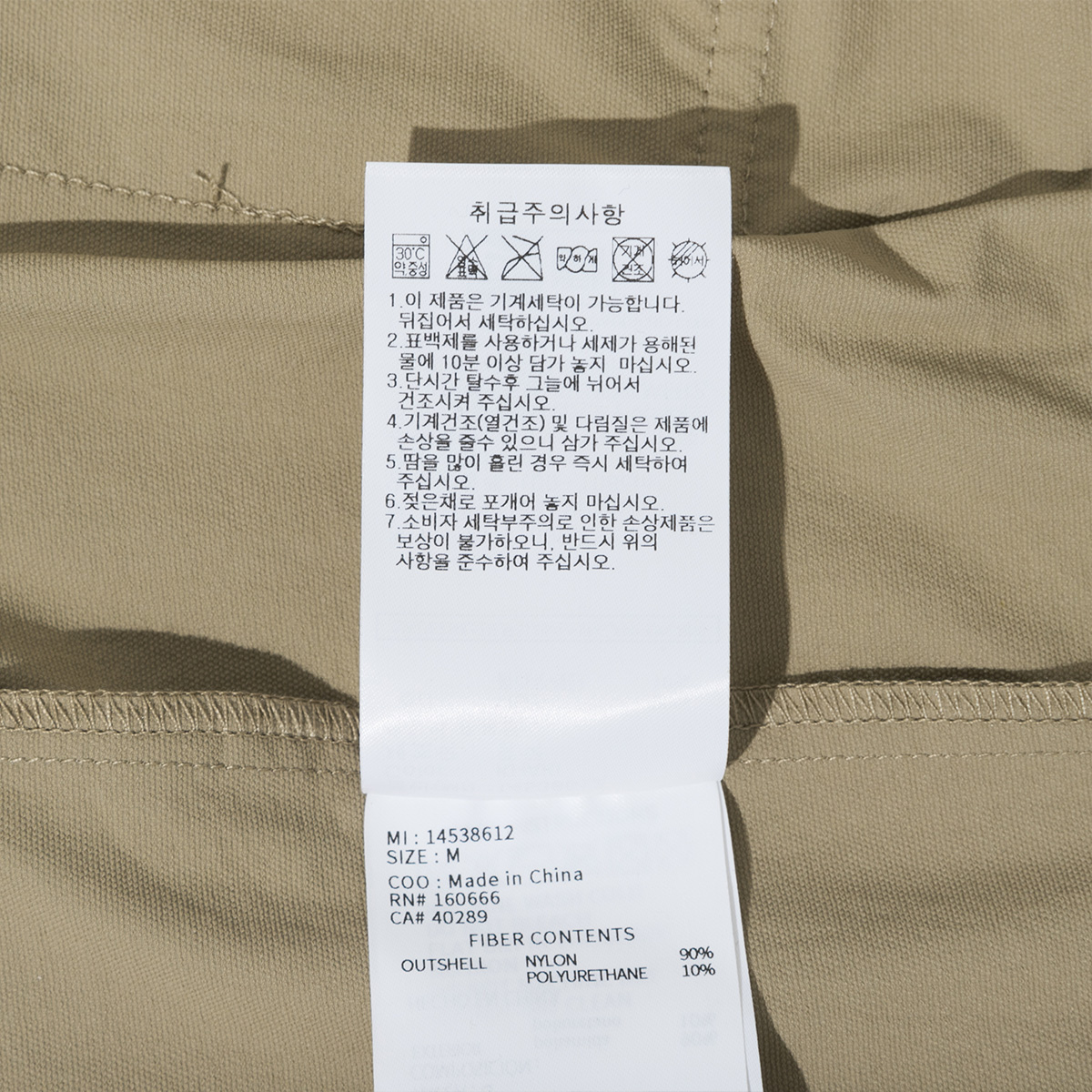 • 제품소재 겉감 : 90% 나일론, 10% 폴리우레탄