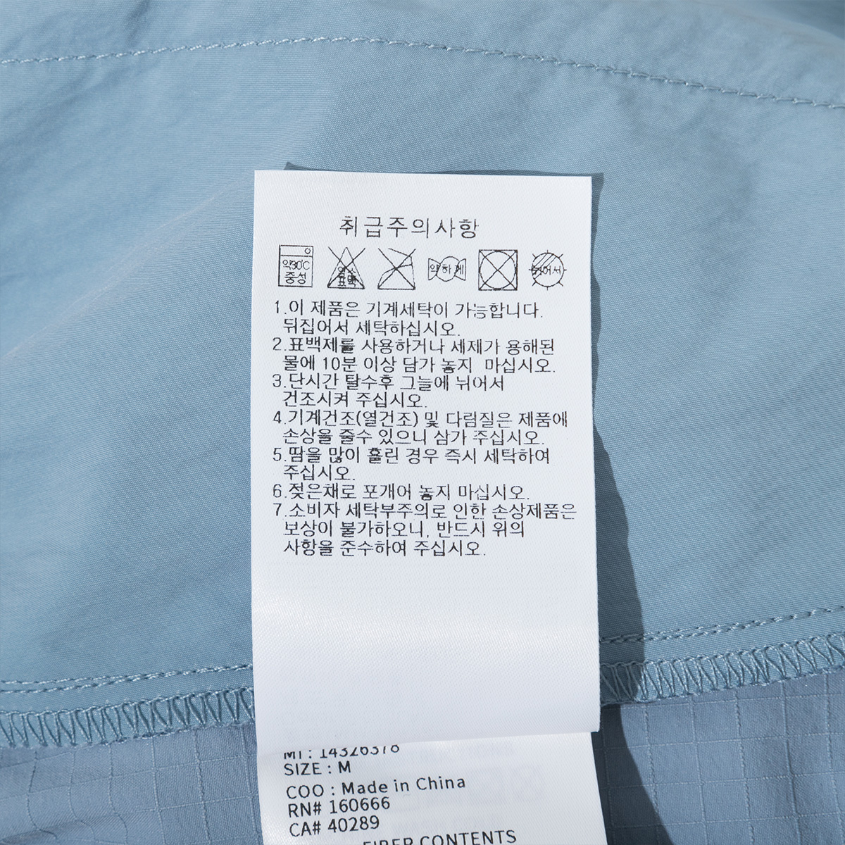 · 제품 혼용률에 따라 세탁 및 취급 유의 사항이 변경될 수 있으므로 반드시 부착되어 있는 케어라벨 내용을 확인하신 후 세탁하시기 바랍니다.