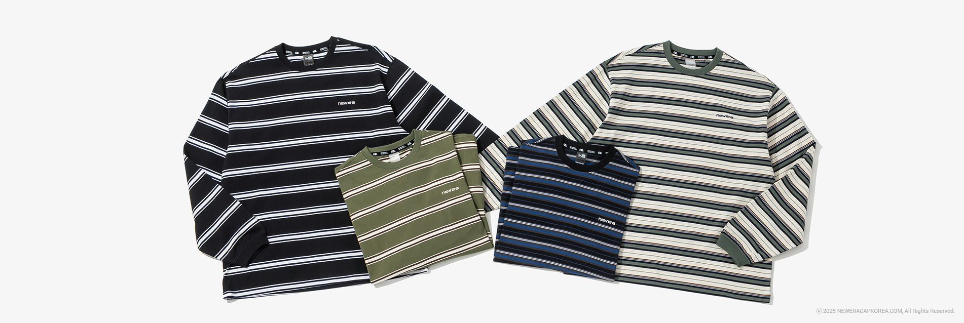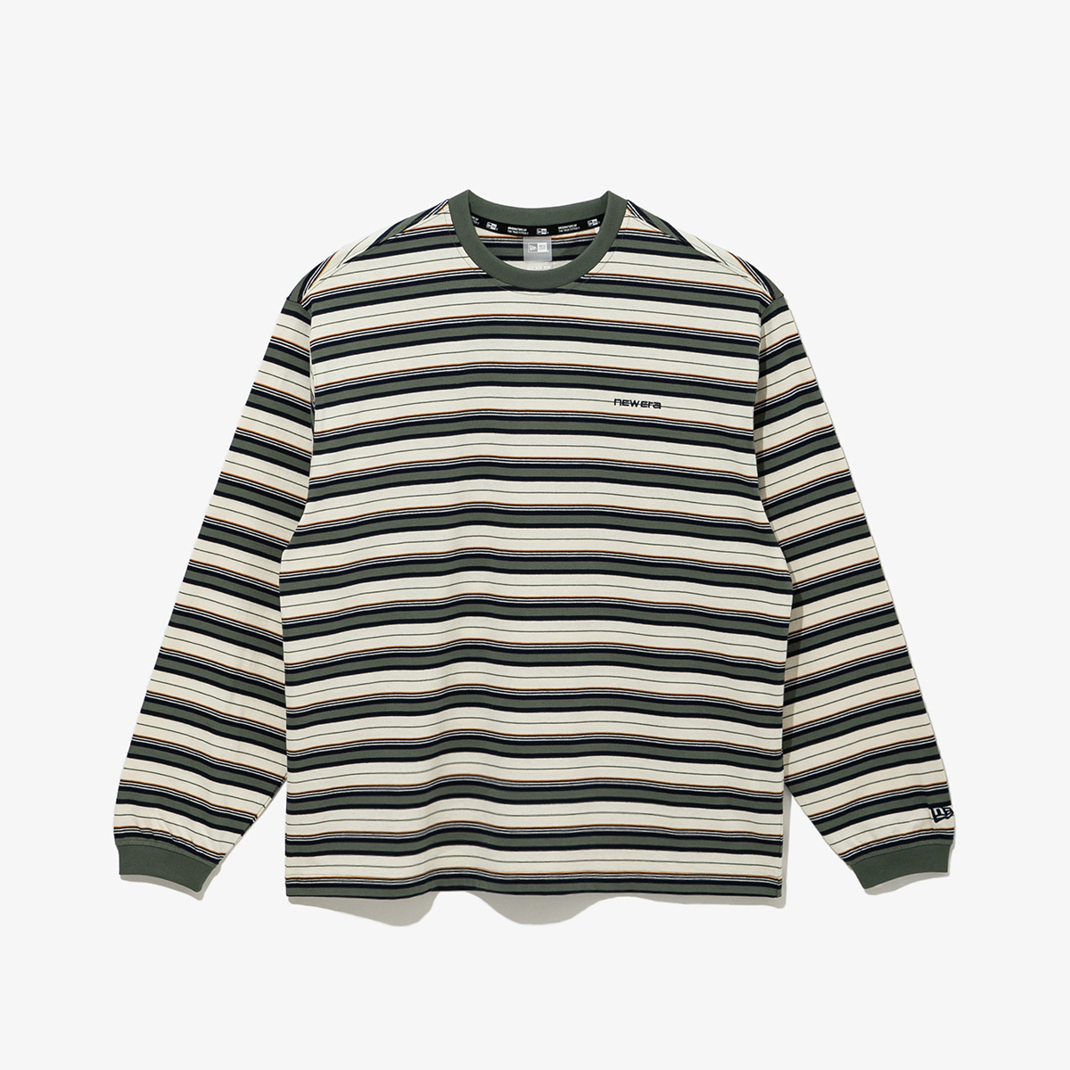 보더 롱 슬리브 티셔츠 컬렉션을 소개합니다. 캐주얼한 스트라이프 패턴으로 포인트를 준 롱 슬리브 티셔츠입니다. 부드러운 코튼 소재로 편안한 착용감을 제공하며, 가슴 부분에 뉴에라 레터링을 자수로 놓아 포인트를 주었습니다. 멀티 스트라이프 2종과 베이직한 스트라이프 2종으로 출시되어 시즌 전반에 활용하기 좋은 보더 롱 슬리브 티셔츠 컬렉션을 지금 바로 만나보세요.