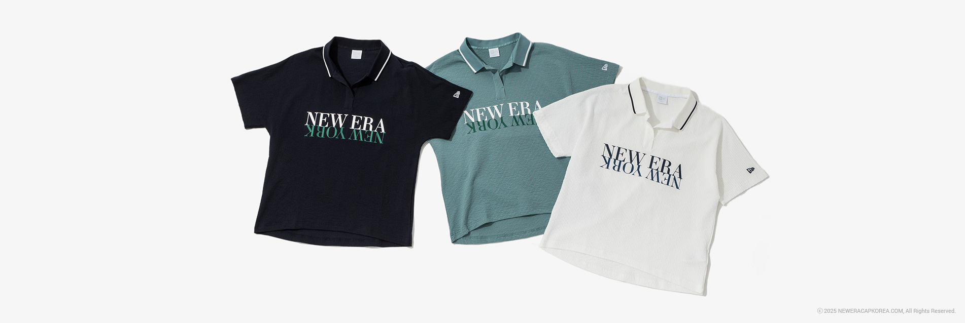 골프 우먼 스키퍼 시어서커 폴로 티셔츠 컬렉션을 소개합니다. 시어서커는 촉감이 부드럽고 피부에 달라붙지 않으며 흡수성, 통기성이 높아 여름에 착용하기 탁월한 소재입니다. 이번 컬렉션은 심플하면서도 유니크한 오픈 카라 V넥 실루엣의 스키퍼 폴로 티셔츠입니다. 뉴에라만의 기술력인 COOLERA™, SOLARERA™, MICROERA™ 원단을 사용하여 항균과 자외선 차단, 쿨링 기능으로 쾌적한 착용감을 자랑랍니다. 스트레치성으로 활동성 또한 뛰어난 골프 우먼 스키퍼 시어서커 폴로 티셔츠로 스타일리쉬한 라운딩 패션을 완성해보세요!