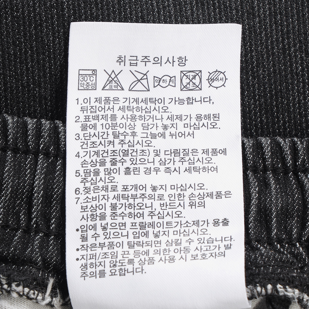 · 지퍼나 단추를 잠근 상태에서 세탁하시면 제품의 변형을 막을 수 있습니다.