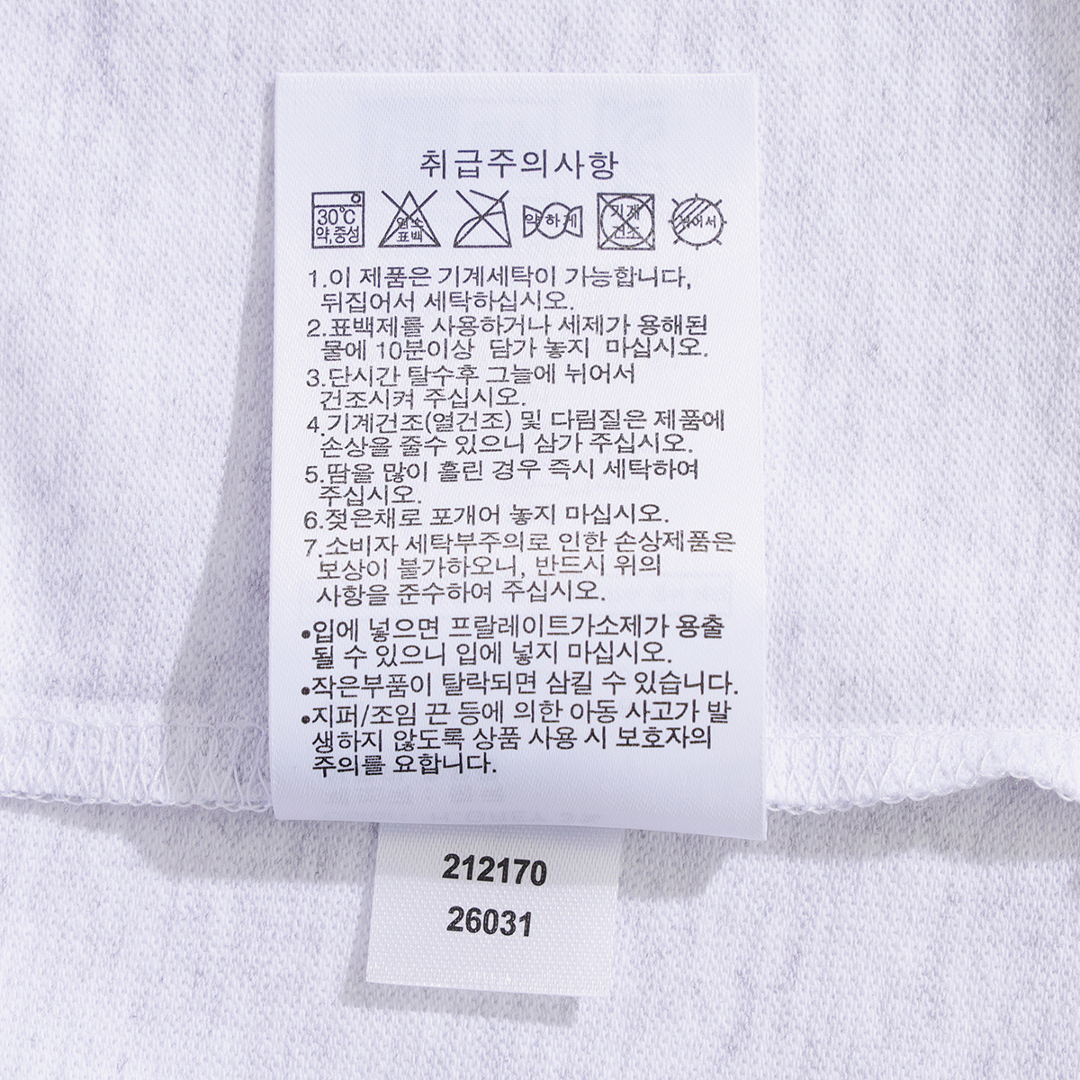 · 제품 혼용률에 따라 세탁 및 취급 유의 사항이 변경될 수 있으므로 반드시 부착되어 있는 케어라벨 내용을 확인하신 후 세탁하시기 바랍니다.