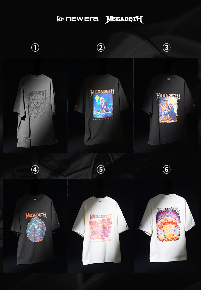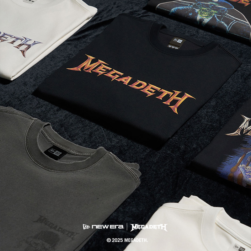 6종의 반팔 티셔츠 컬렉션은 뉴에라만의 기술력으로 완성되어 쾌적한 착용감을 자랑하는 COOL ERA™ 소재의 반팔 티셔츠 4종과 빈티지한 데미지, 가먼트 다잉을 통한 내추럴한 색감을 자랑하는 워싱 티셔츠 2종으로 출시되었습니다. 각 티셔츠에는 메가데스의 앨범, 투어 등에서 사용되었던 아트웍을 프린트하여 메가데스만의 메탈 무드를 표현합니다. 유니크하고 빈티지한 그래픽과 디테일로 아웃핏에 포인트가 되어줄 메가데스와의 협업 컬렉션을 지금 바로 소장해보세요.