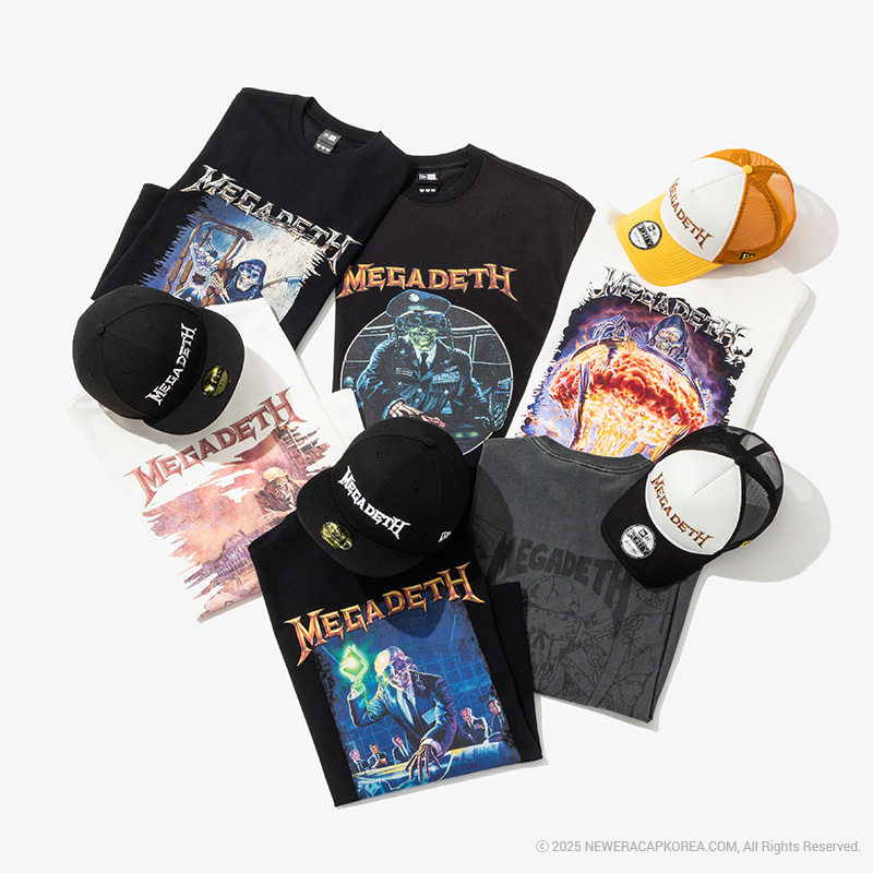 미국의 전설적인 스래쉬 메탈 밴드 메가데스(MEGADETH) 와의 협업 컬렉션을 소개합니다. 이번 협업 컬렉션은 헤드웨어 4종과 반팔 티셔츠 6종으로 구성되어 출시되었습니다. 총 4종으로 준비된 헤드웨어는 메가데스의 로고를 활용한 로고 플레이가 돋보이는 뉴에라의 아이코닉한 실루엣 59FIFTY 사이즈캡 2종, 다이나믹한 형태와 통기성을 동시에 갖춘 9FORTY A프레임 트러커 볼캡 2종으로 만나보실 수 있습니다.