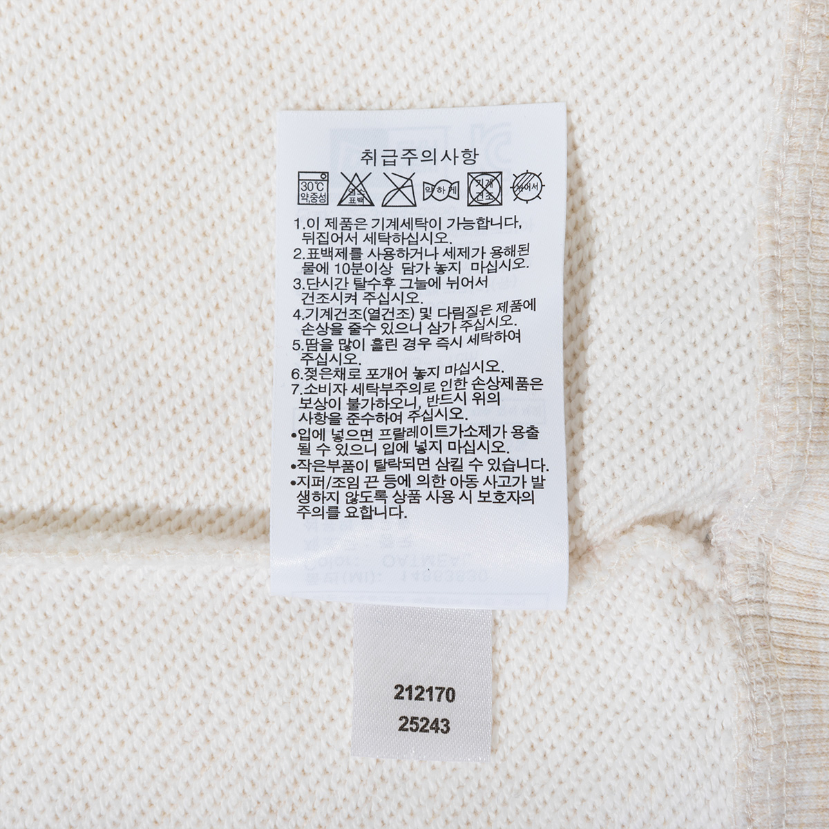 세탁방법 및 취급시 주의사항 제품 안쪽 케어 라벨 참조