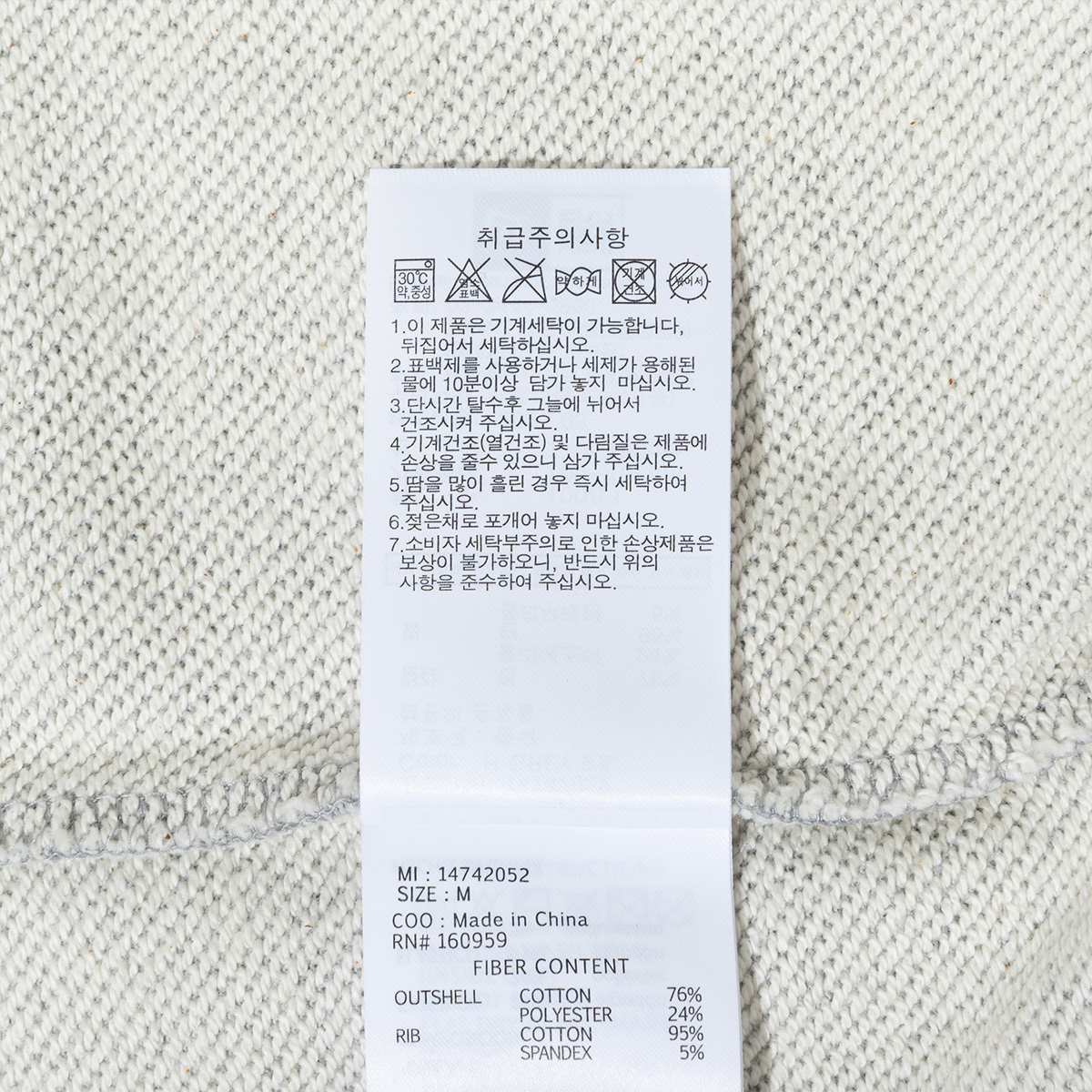 · 제품 혼용률에 따라 세탁 및 취급 유의 사항이 변경될 수 있으므로 반드시 부착되어 있는 케어라벨 내용을 확인하신 후 세탁하시기 바랍니다.