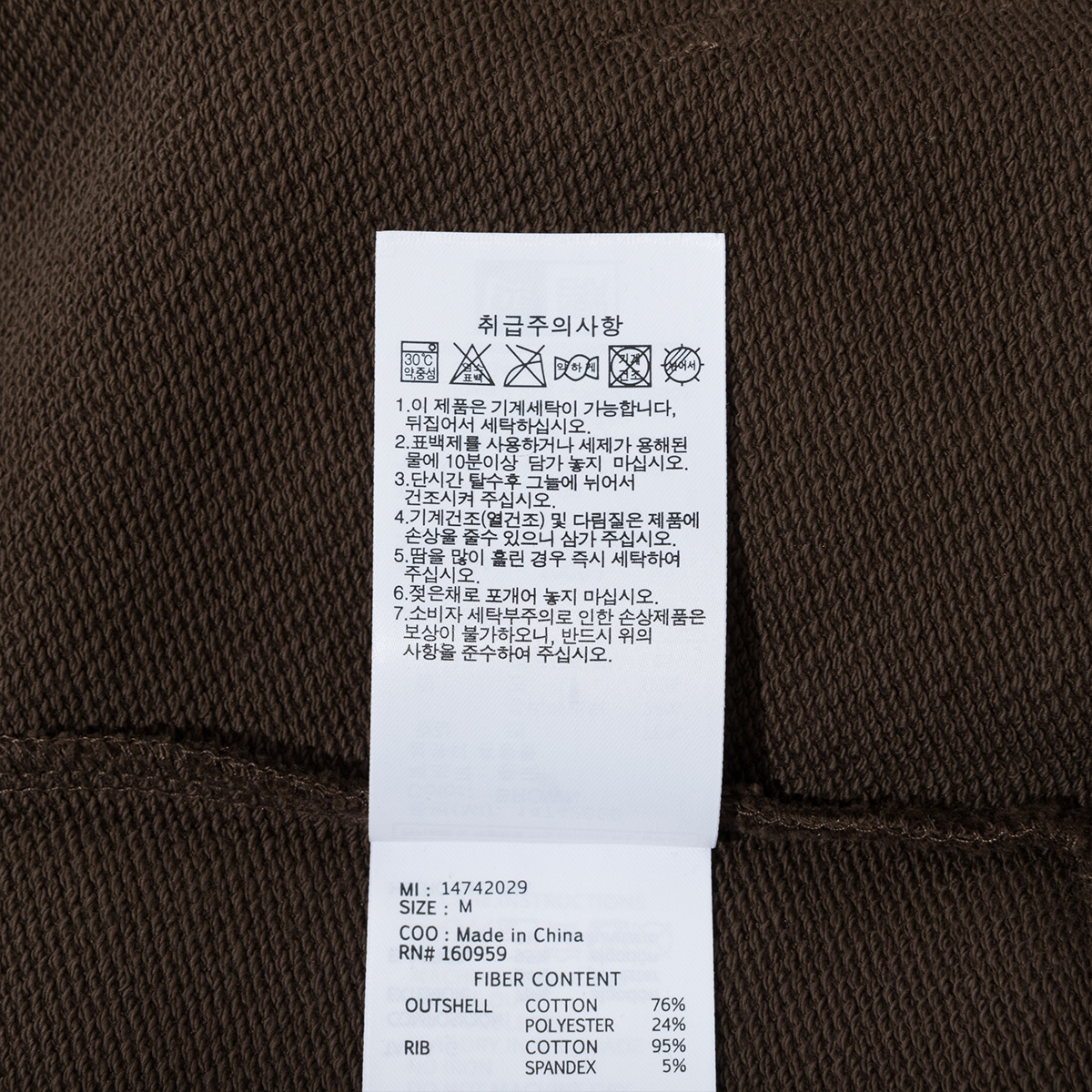 겉감 : 76% 코튼, 24% 폴리에스터