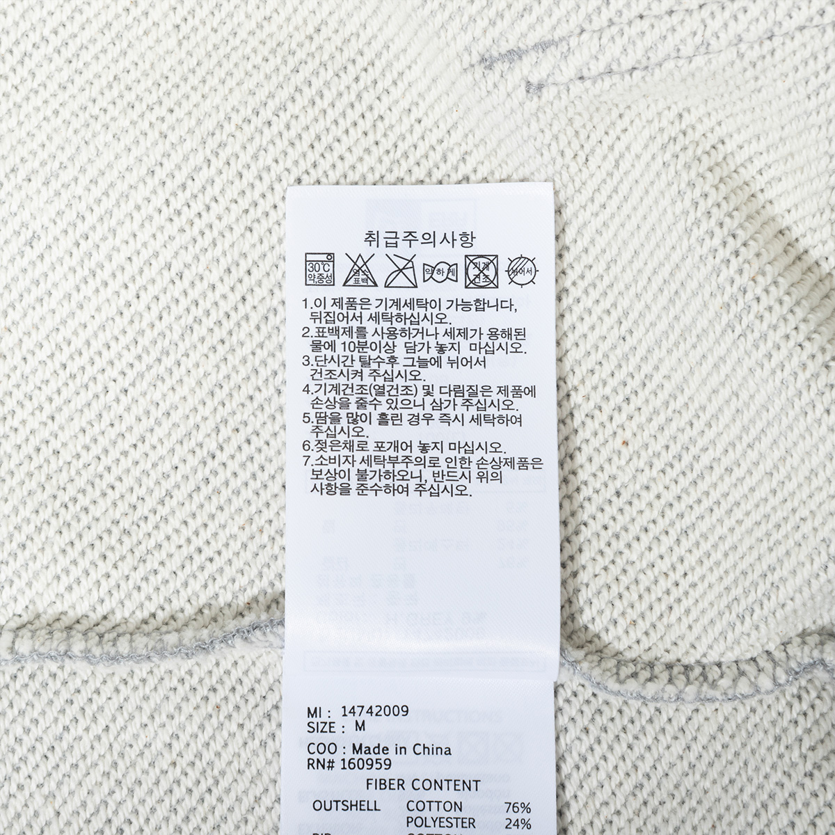 · 제품 혼용률에 따라 세탁 및 취급 유의 사항이 변경될 수 있으므로 반드시 부착되어 있는 케어라벨 내용을 확인하신 후 세탁하시기 바랍니다.
